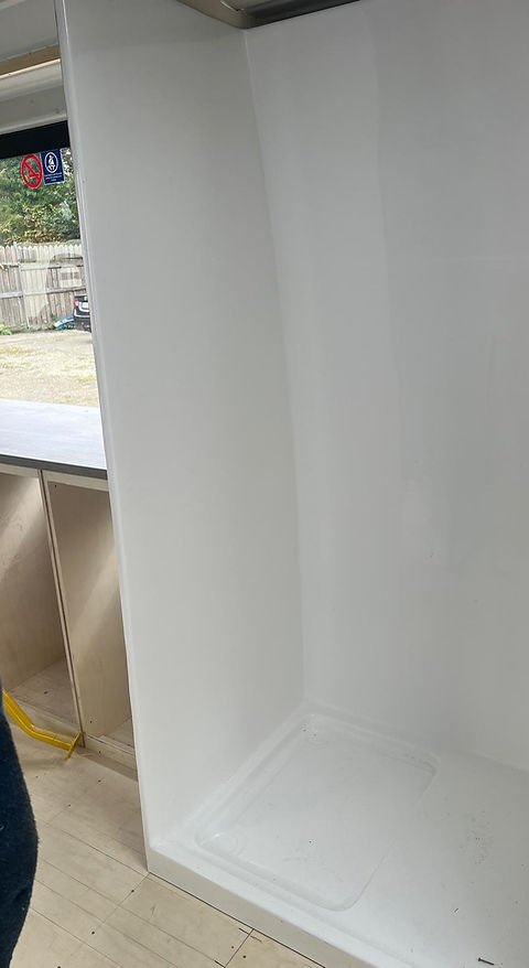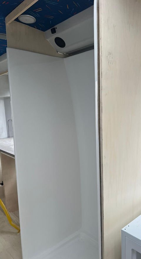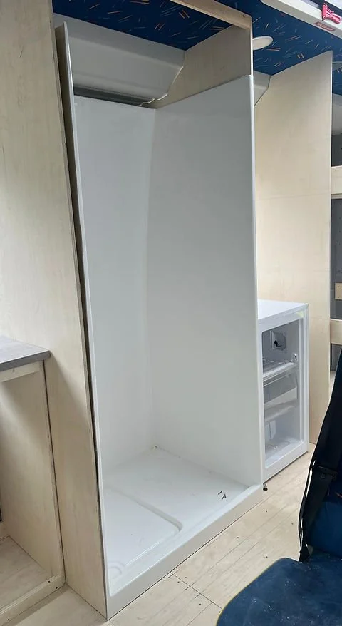 Our shower pod is a fully enclosed, one-piece fibreglass unit designed for fast, leak-proof installation in campervans and motorhomes. Built in Ireland, it features a seamless design with no joints, ensuring long-term durability and zero leaks.