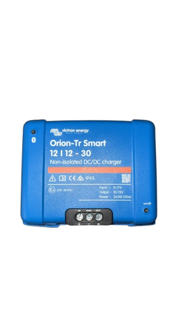 The Victron Orion-Tr Smart 12/12-30A (360W) Non-Isolated DC-DC Charger is a professional battery-to-battery charger designed for dual battery systems in campervans and vehicles. It allows your alternator to safely and efficiently charge your leisure battery while driving.